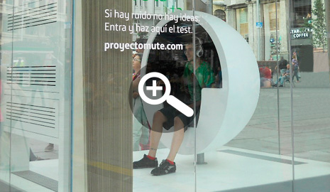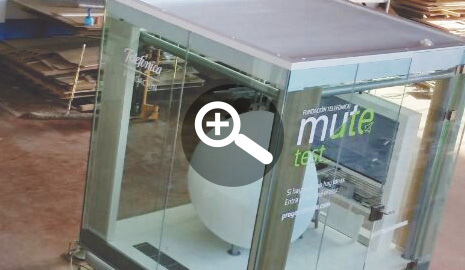 Telefónica Foundation - Acción Mute Development and manufacture of a cube with a fully glazed perimeter, interior air-conditioning, LED lighting, exterior lighting control by means of automated blinds, waterproofed roof and new domotised technologies via iPad |